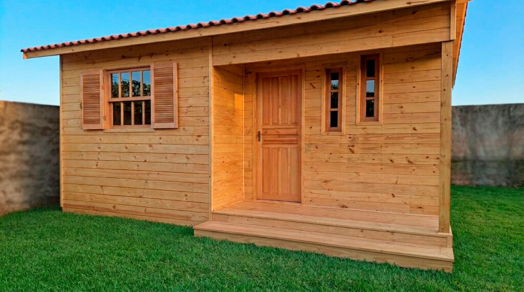 Modelo compacto, funcional e ideal para quem busca uma casa pré-fabricada montada econômica, perfeita para sítios, áreas rurais, casas de apoio ou projetos simples.